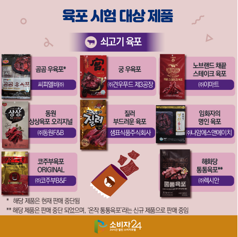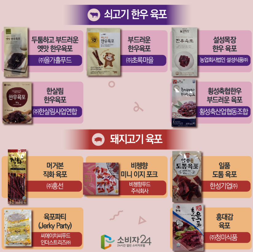 🛒 출처: 한국소비자원 육포 시험평가 보고서 (2024.12 기준)
